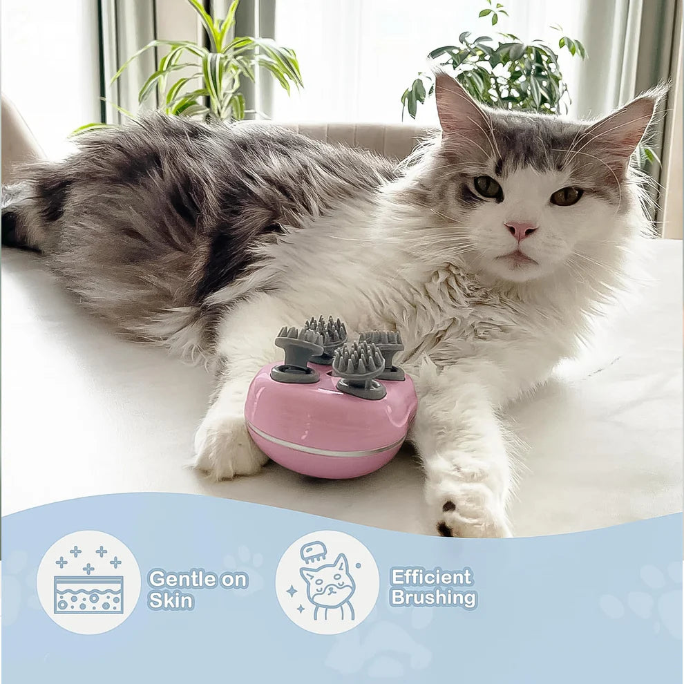 • Wet and Dry Dual Use: The new upgraded massager for pets has an IPX6 waterproof rating, allows your pet to massage their head or other parts of their body while resting or bathing, the four massage contacts are removable for easy cleaning, the soft food grade silicone head prevents hair pulling and tangling and will not harm your pet's skin.